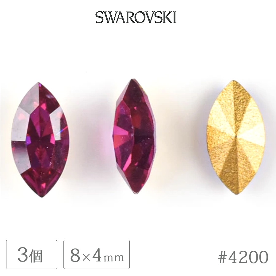 スワロフスキー クリスタル #4200 マーキス ゴールドフォイル フィッシャー 約8×4mm 3個 ヴィンテージ SWAROVS...