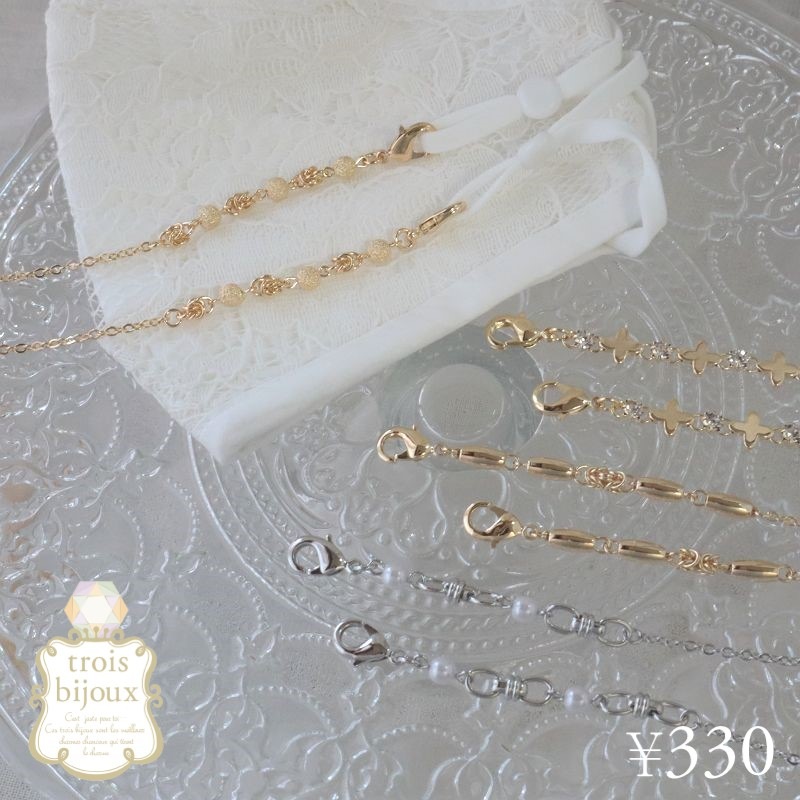 マスクストラップ パール×メタルボール/ガラスビーズアソート