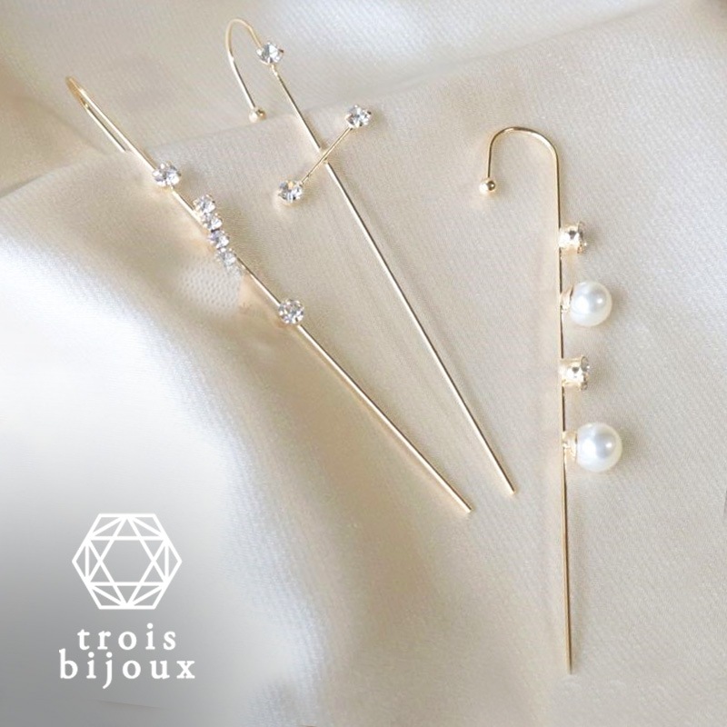 イヤカフ スティックパールグラスストーン イヤーラップピアス