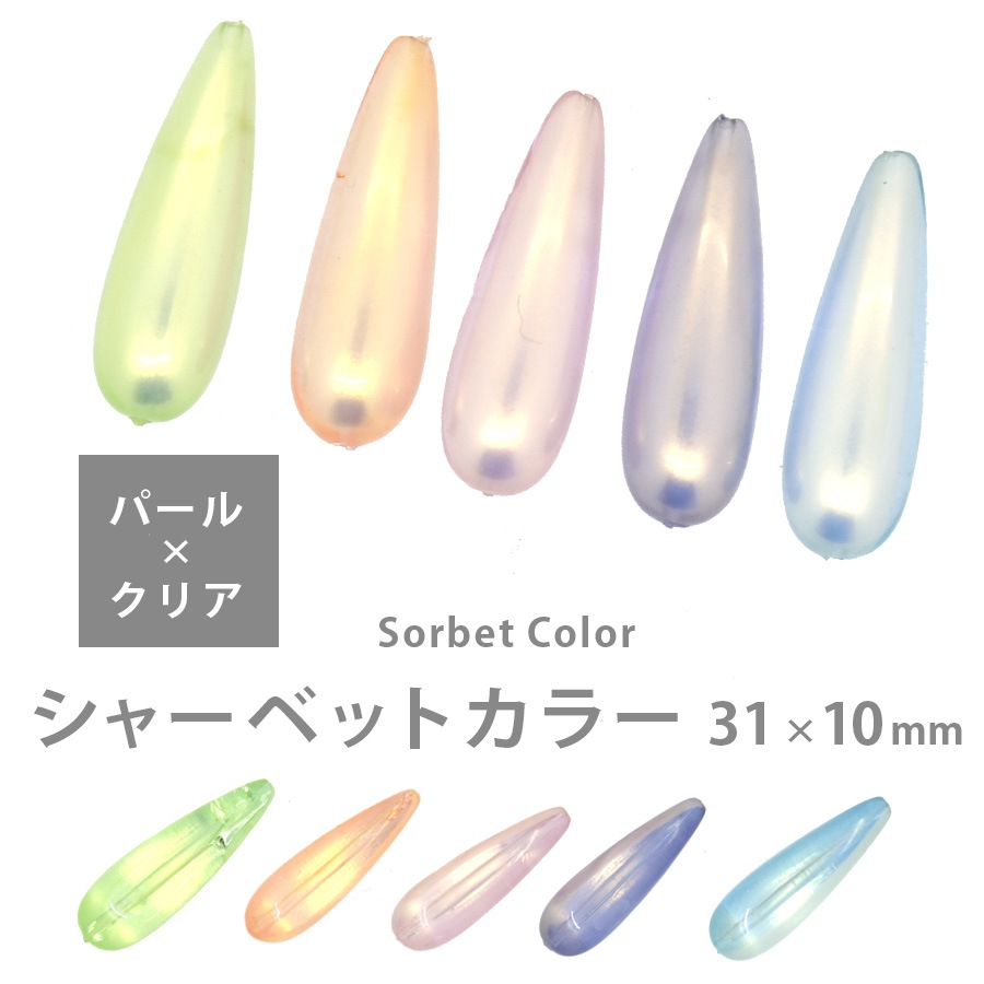 アクリルビーズ シャーベットカラー ドイツバロック 31×10mm 2個 パール×クリア