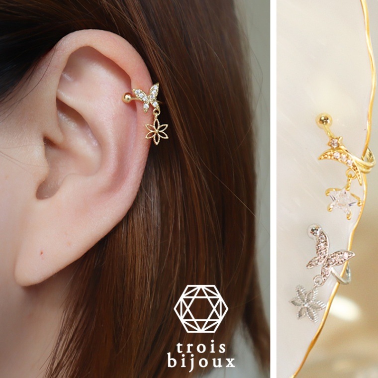 イヤカフ K18コーティング スター&バタフライチャーム付き