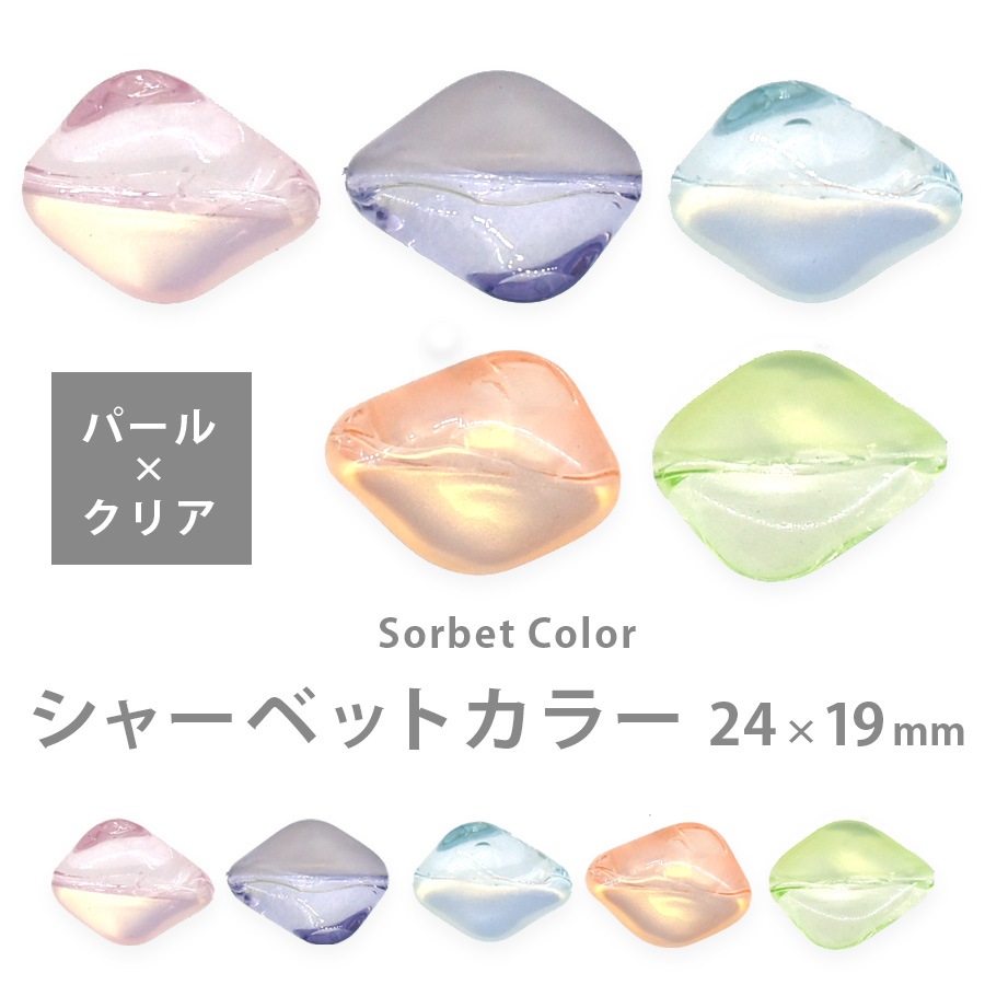 アクリルビーズ シャーベットカラー ドイツバロック 24×19mm パール×クリア