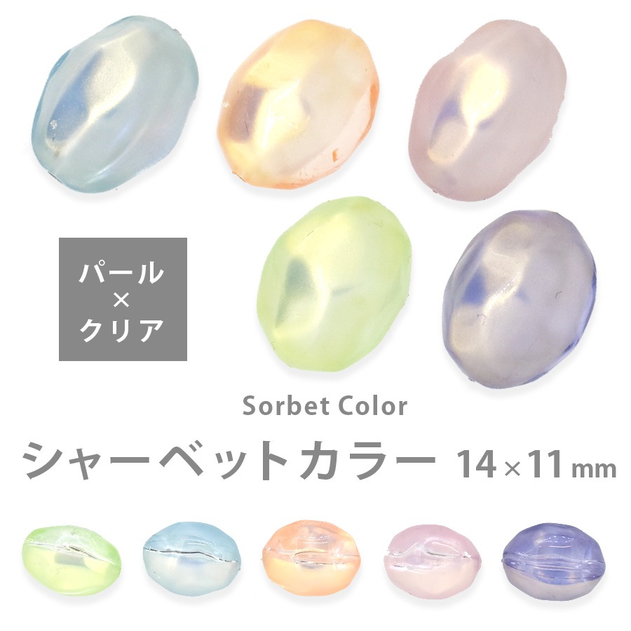 アクリルビーズ シャーベットカラー ドイツバロック 18×13mm パール×クリア