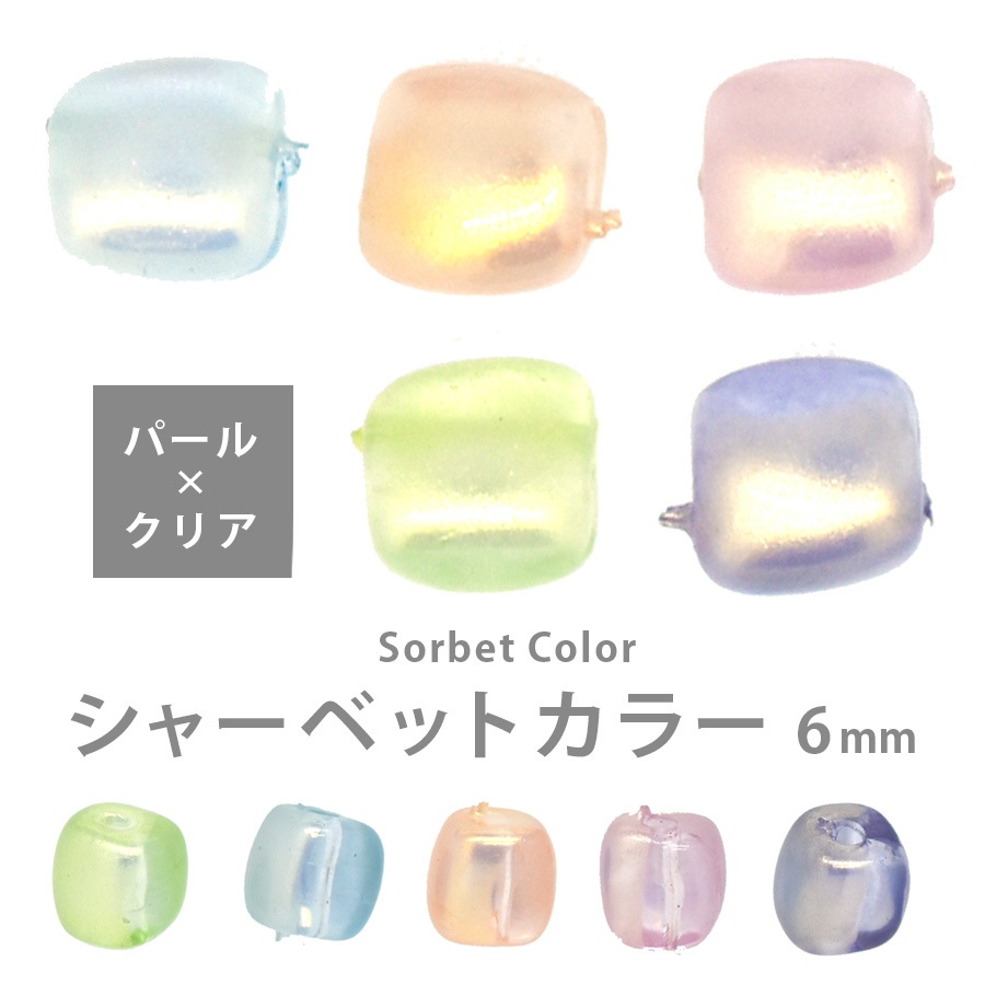 アクリルビーズ シャーベットカラー ドイツバロック 6mm 4個 パール×クリア
