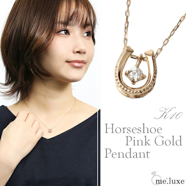 me.luxe ホースシュー ダイヤモンド ピンクゴールドネックレス 馬蹄 メンズ レディース ネックレス ゴールドアクセサリー ...