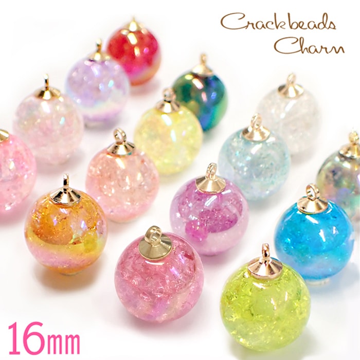 クラック丸玉チャーム 【1個売り】約16mm カラフル ビーズチャーム カンつき オーロラ オーラ ガラス 丸玉 ハンドメイド 手...