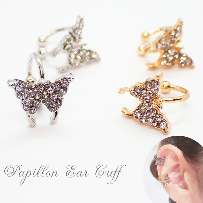 アクセサリー【04 ageha 蝶 イヤーカフ シルバー / ゴールド 】2個セット ラインストーン ノンホールピアス 韓国 浴衣...