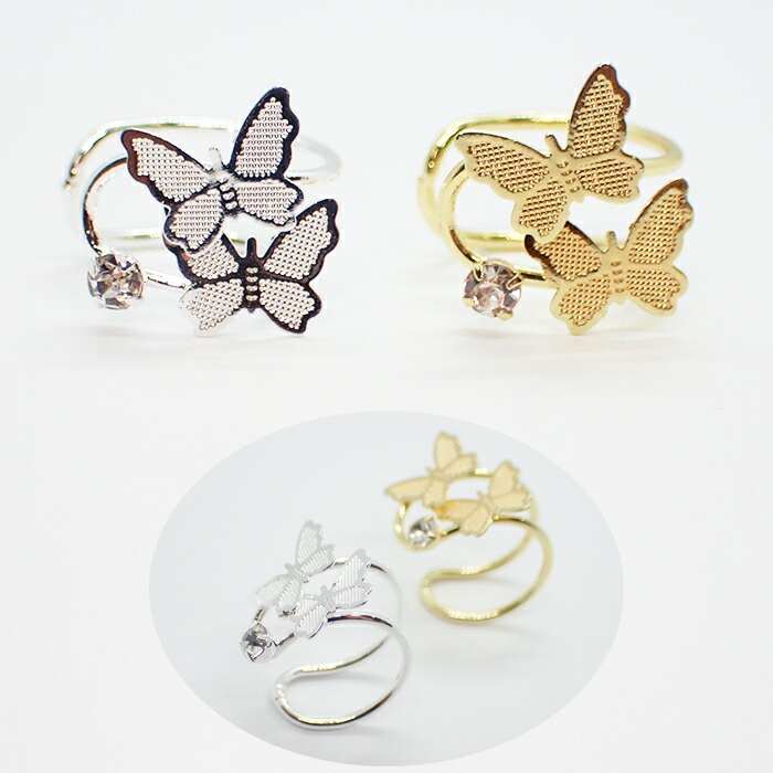 アクセサリー【05 ツイン バタフライ イヤーカフ シルバー / ゴールド】1個売り 蝶 ノンホールピアス 韓国 浴衣 成人式 初...