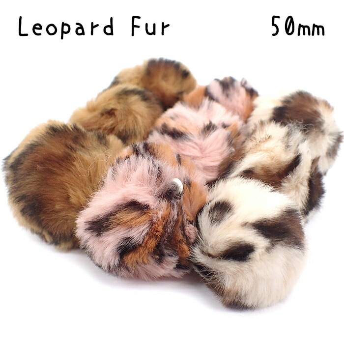 ファー【21.レオパード5cm 3色】【1個売り】 ゴム付き 輪 ファー フェイクファー チャーム 猫 豹 ミニファー ぽんぽん【...