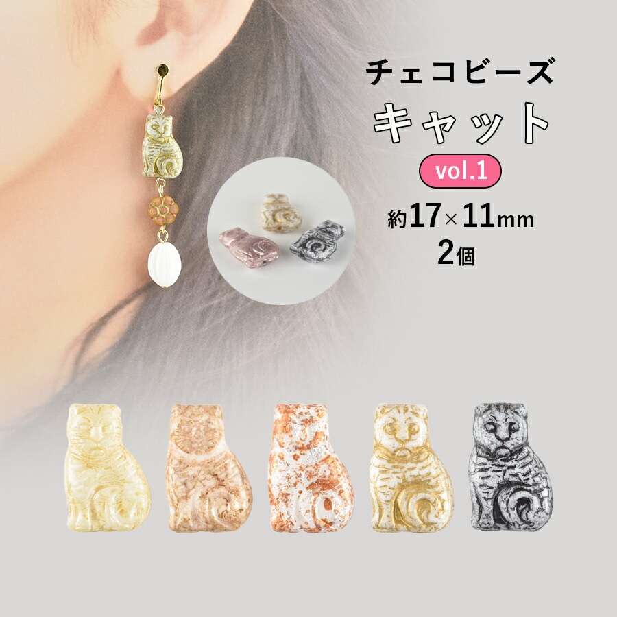 【期間限定40%OFF】チェコビーズ キャット 2個 約17×11mm 猫 ねこ ネコ cat ビーズ パーツ ガラスビーズ アク...