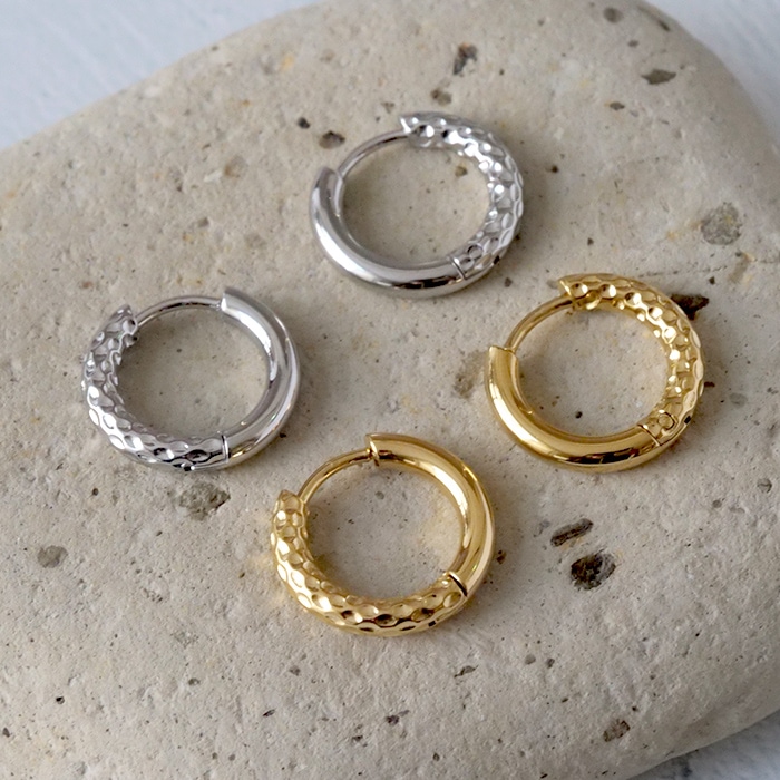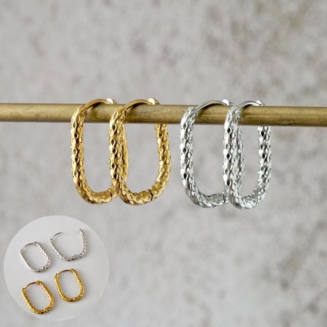 金属アレルギー対応 ステンレス ピアス 【178.槌目風 オーバル フープピアス 1ペア】マット キャッチレス シンプル 国内発送...
