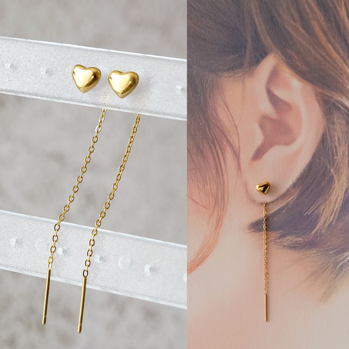 金属アレルギー対応 ステンレスピアス 【165. ダガー ハート フープ ピアス】 ゴールド キャッチレス メール便送料無料 国内...