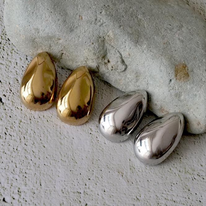 【金属アレルギー対応】142. ステンレス ドロップ型ピアス 1ペア 大ぶり メタリック【メール便送料無料】