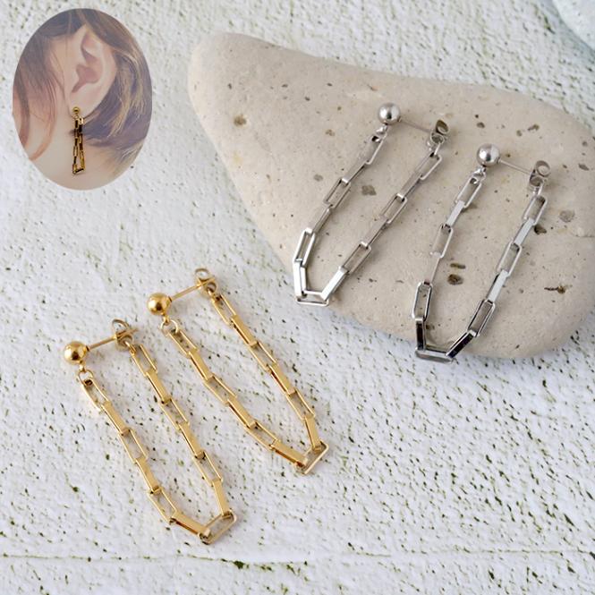 金属アレルギー対応! ステンレスピアス 【185.チェーンピアス 1ペア】 チェーンフープ ゴールド シルバー【メール便送料無料】