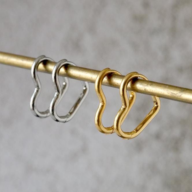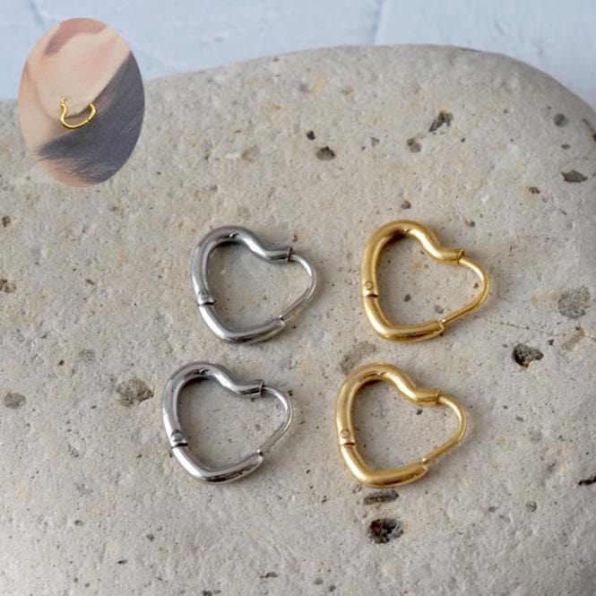 金属アレルギー対応 サージカルステンレス 【174. ハート フープピアス S 12x11mm】 キャッチレス オープンハート メ...