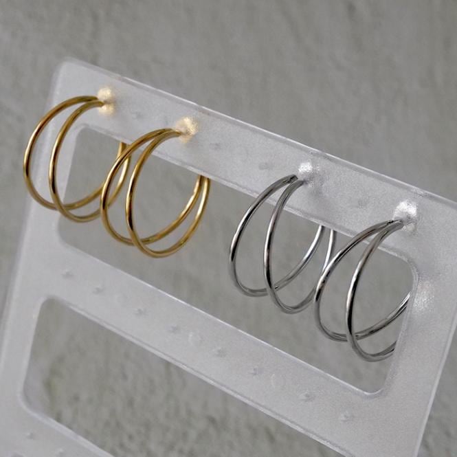 金属アレルギー対応 ステンレスピアス 【169. トリプルリング ピアス】 ゴールド/シルバー スタッド メール便送料無料 国内発...