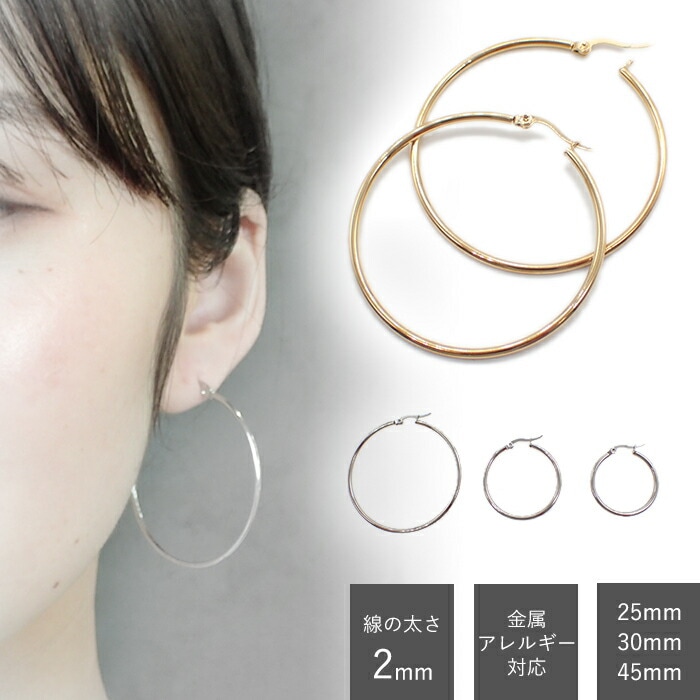 【メール便送料無料 】サージカルステンレス316 フープピアス2mm幅(内径 25mm 30mm 45mm)1ペア 金属アレルギ...