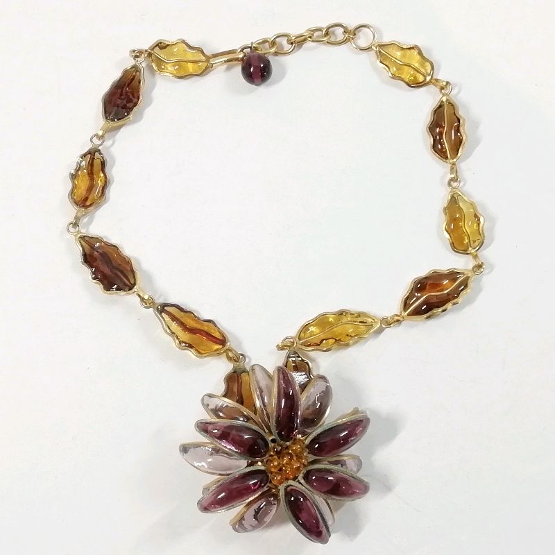 【中古】HISTOIRE DE VERRE 花柄 ガラス工芸 ネックレス