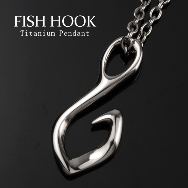 フィッシュフック チタン ネックレス チェーン付き メンズ ペンダント 釣り針 フィッシング スポーツ マラソン 健康 金属アレル...