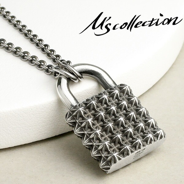M\'s collection エムズコレクション スタッズ パドロック ネックレス チェーン付 南京錠 鍵 錠前 メンズ ペン...