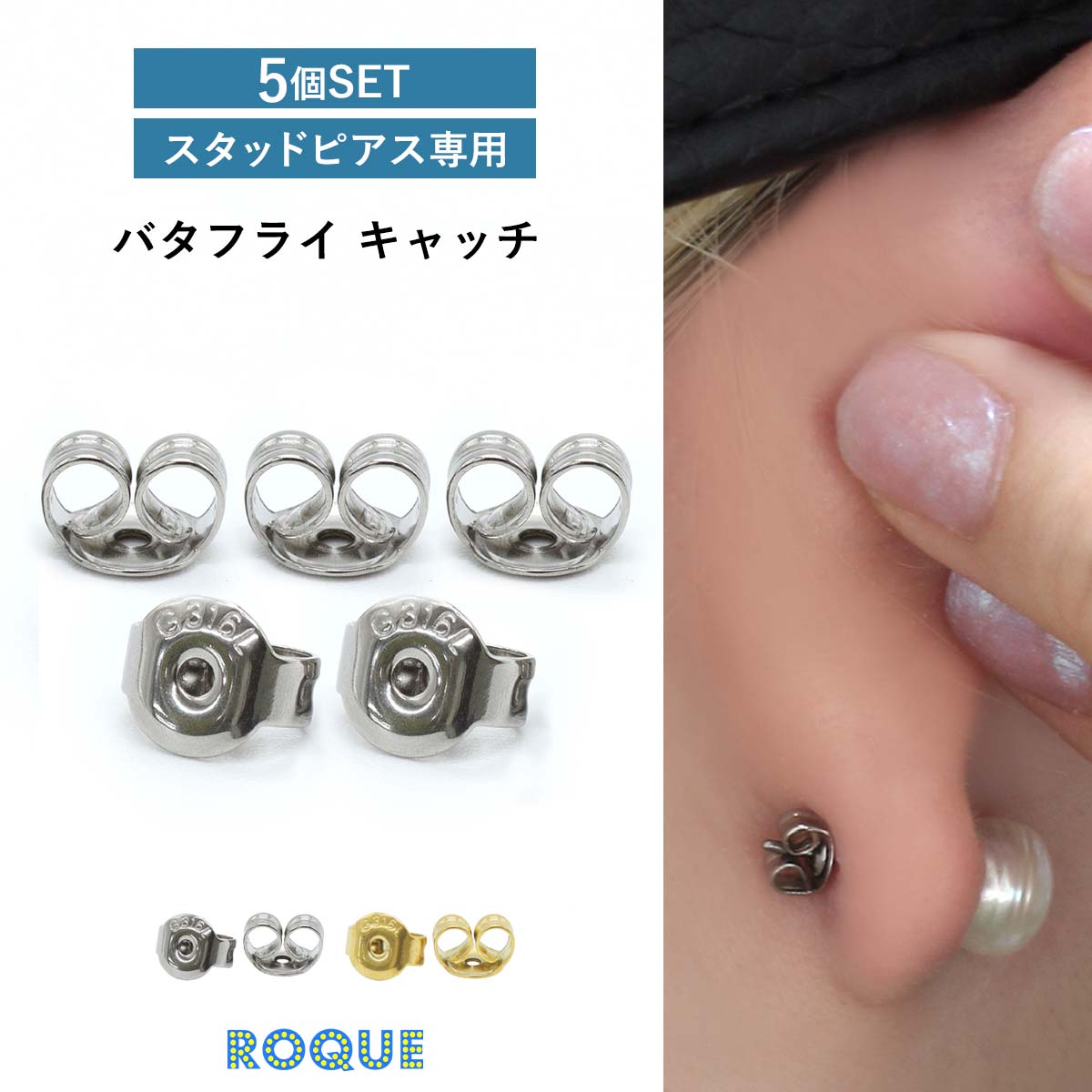 (5個SET) ピアスキャッチ バタフライキャッチ ファッションピアス 20G 18G 対応 B型 バックキャッチ 金属アレルギー...