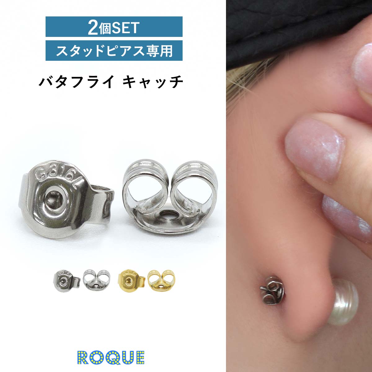 (2個SET) ピアスキャッチ バタフライキャッチ ファッションピアス 20G 18G 対応 B型 バックキャッチ 金属アレルギー...