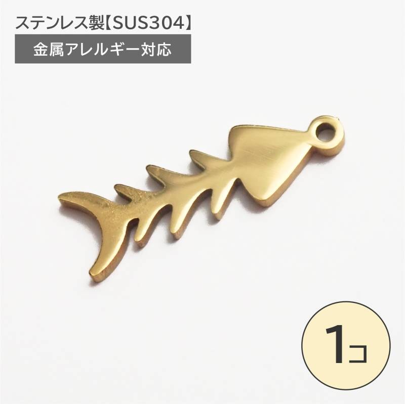 ステンレス製【SUS304】 金属アレルギー対応 魚の骨 チャーム カン付き