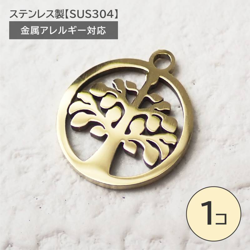ステンレス製【SUS304】 金属アレルギー対応 木 チャーム カン付き