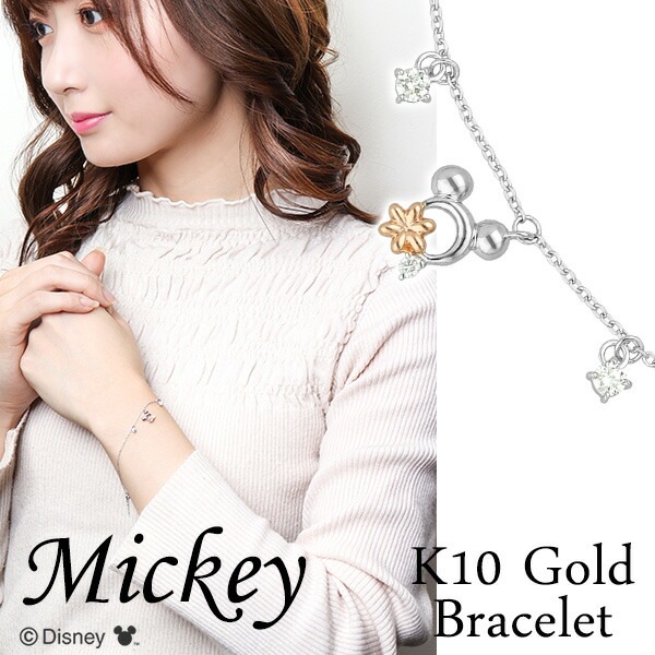 ディズニー ミッキー ダイヤモンド ゴールド ブレスレット ミッキーマウス K10 Disney 公式 ディズニーブレスレット オ...