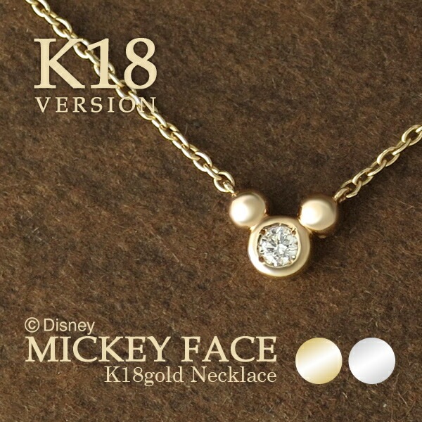 Disney ディズニー ミッキー シルエット 揺れる ダイヤモンド ひと粒 K18 ゴールド ネックレス ミッキーマウス ホワイ...