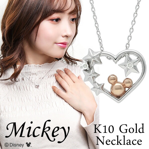 ディズニー ミッキー ハート ネックレス ミッキーマウス K10 ゴールド ダイヤモンド Disney 公式 ディズニーネックレス...