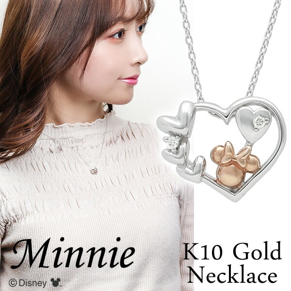 ディズニー ミニー ハート ネックレス ミニーマウス K10 ゴールド ダイヤモンド Disney 公式 ディズニーネックレス オ...