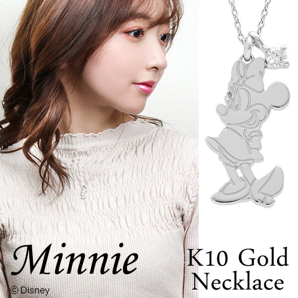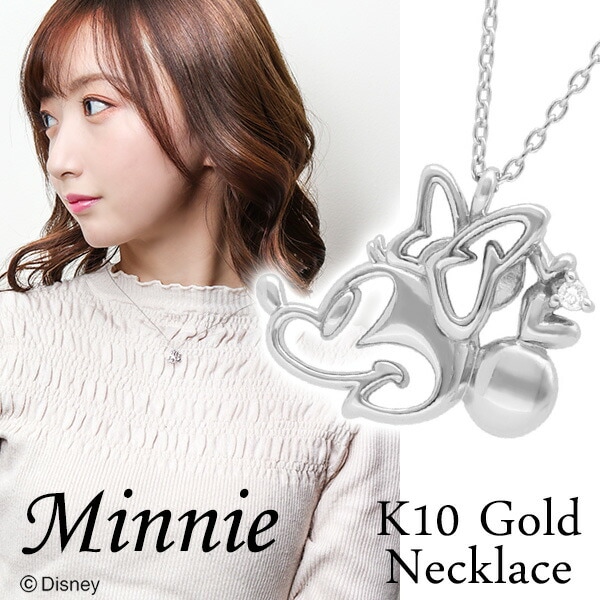 ディズニー ミニー ネックレス ミニーマウス K10 ホワイトゴールド ダイヤモンド Disney 公式 ディズニーネックレス オ...