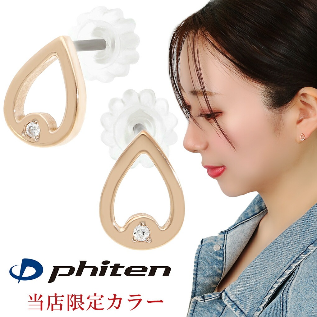 ファイテン ピアス チタン レディース 2P 両耳用 fe-fe phiten ダイヤモンド ドロップ チタンピアス スタッドピア...