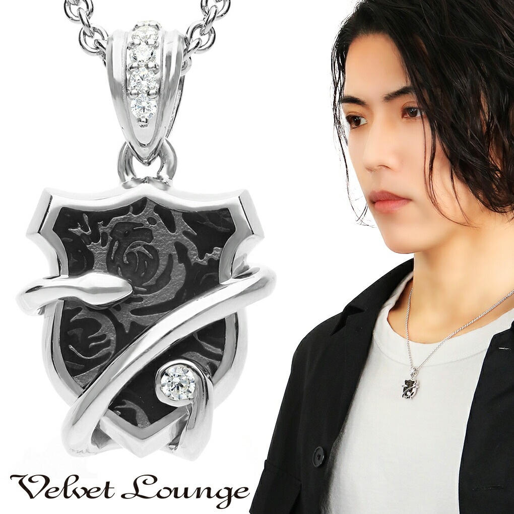 Velvet Lounge ヴェルヴェットラウンジ ブラック エンブレム スネーク ネックレス (チェーン付き) ペンダント メン...