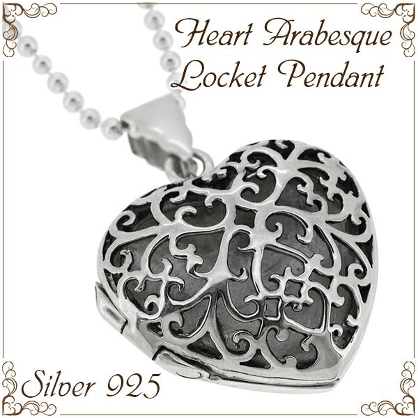 ハート型 透かし アラベスク シルバー ロケットネックレス ロケット ネックレス ペンダント アンティーク ハート イニシャル刻印...