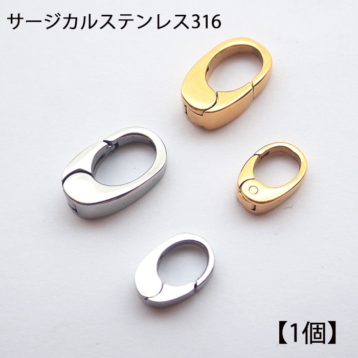 ステンレス 316 【オーバル型・カラビナ風クラスプ】1個 金属アレルギー対応 留め具 キーホルダー