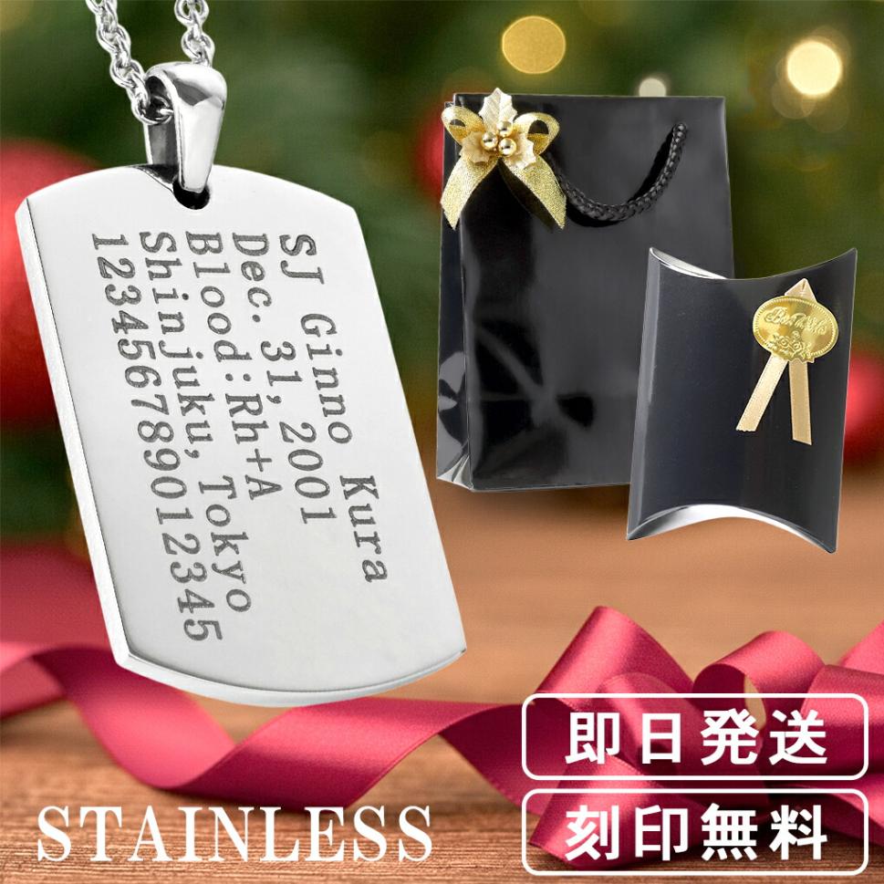 ドッグタグ ステンレス ネックレス ペンダント メッセージ オリジナル ギフト 名入れ 印字 サージカルステンレス 迷子札 猫 犬...