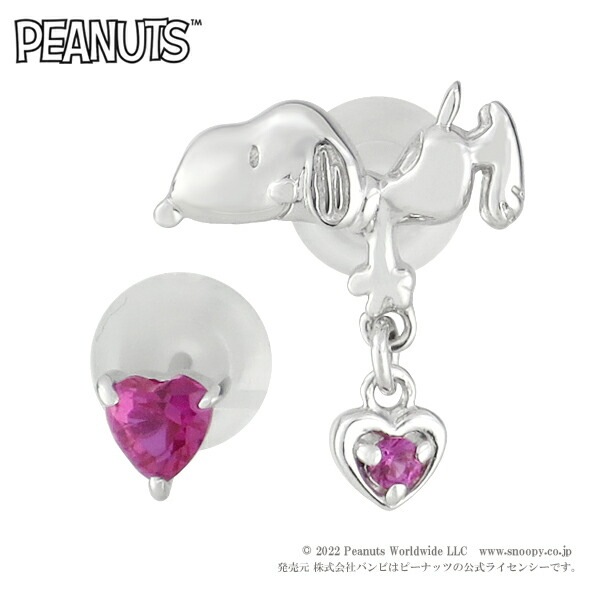 スヌーピー ハート シンセティックルビー アシンメトリー スタッドピアス 2P 両耳用 シルバー925 公式 PEANUTS SN...