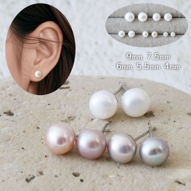 淡水パール 一粒ピアス 4mm 5mm 6mm 7mm 9mm ボタン型 ステンレスポスト サージカル 316 金属アレルギー対応...