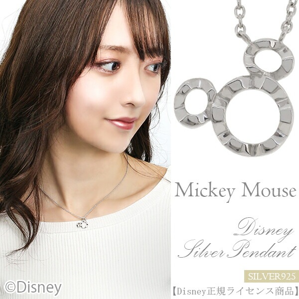 Disney ディズニー 透かし シルエット ミッキーマウス シルバー ネックレス ミッキー ペンダント 公式 オフィシャル ジュ...