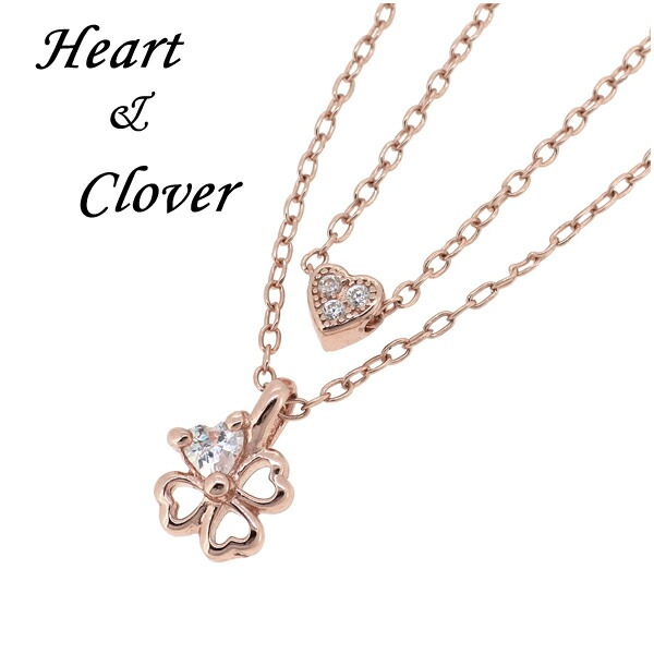 2連ハート クローバー ピンクゴールド シルバー ネックレス 925 銀 レディース ペンダント 女性用 レディースネックレス ネ...