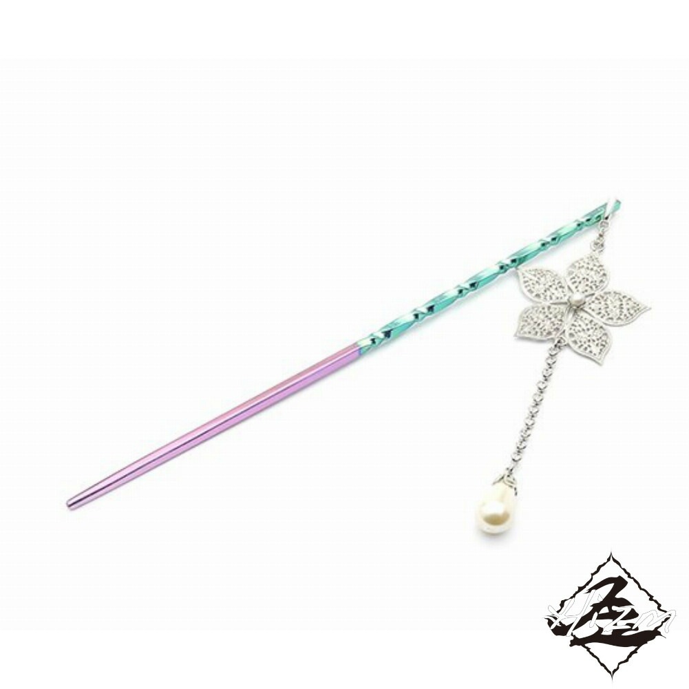 Hizm チタン製 簪 流水に空バイカラーオーロラ 銀冬華 純チタン 簪 15-18cm 軸変更可 チタン かんざし 髪飾り ヘア...