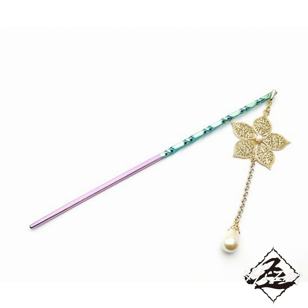 Hizm チタン製 簪 流水に空バイカラーオーロラ 金冬華 純チタン 簪 15-18cm 軸変更可 チタン かんざし 髪飾り ヘア...