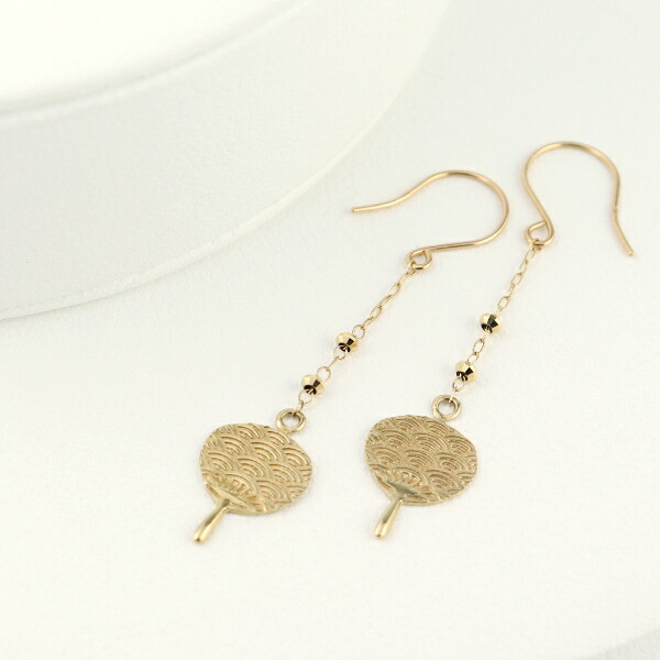 うちわ ゴールド ピアス 2P 両耳用 K10 フック ゴールドピアス 団扇 夏祭り 浴衣 着物 10金 10k チェーン 揺れる...