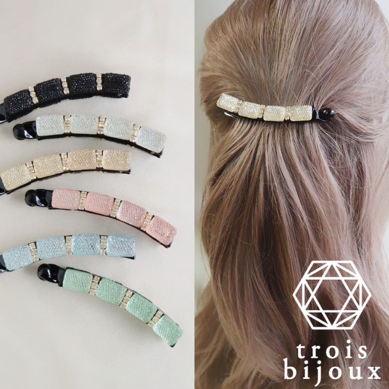 バナナクリップ カラーセルビーズ クリアラインストーン
