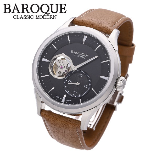 BAROQUE 腕時計 BA2006 ネイビー 日本製 時計 ステンレス ウォッチ 紳士 ビジネス 自動巻き 機械式 文字盤 大き...