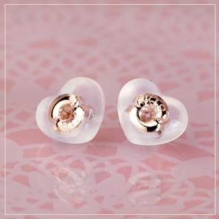 K18PG(ピンクゴールド)ハート形ダブルロックキャッチ(0.7~0.9mmポスト用)(khspg)