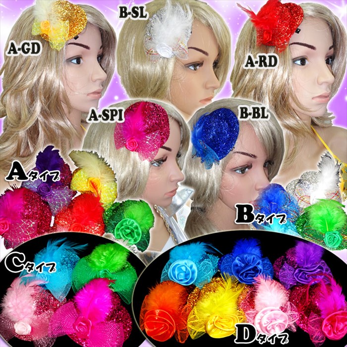 A6952-メタリックチュールフェザー付ミニハット型ヘアクリップ【中】