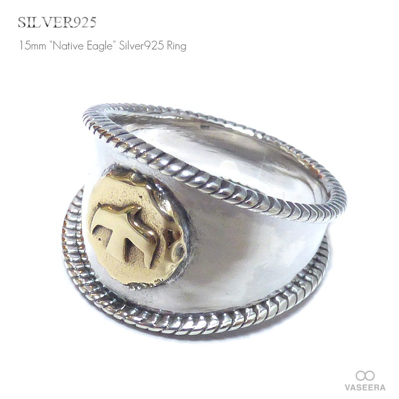 ネイティブ・ゴールドイーグル サイドロープデザイン仕上げ 15mm幅 シルバーリング 【シルバー925/SILVER925 /指...
